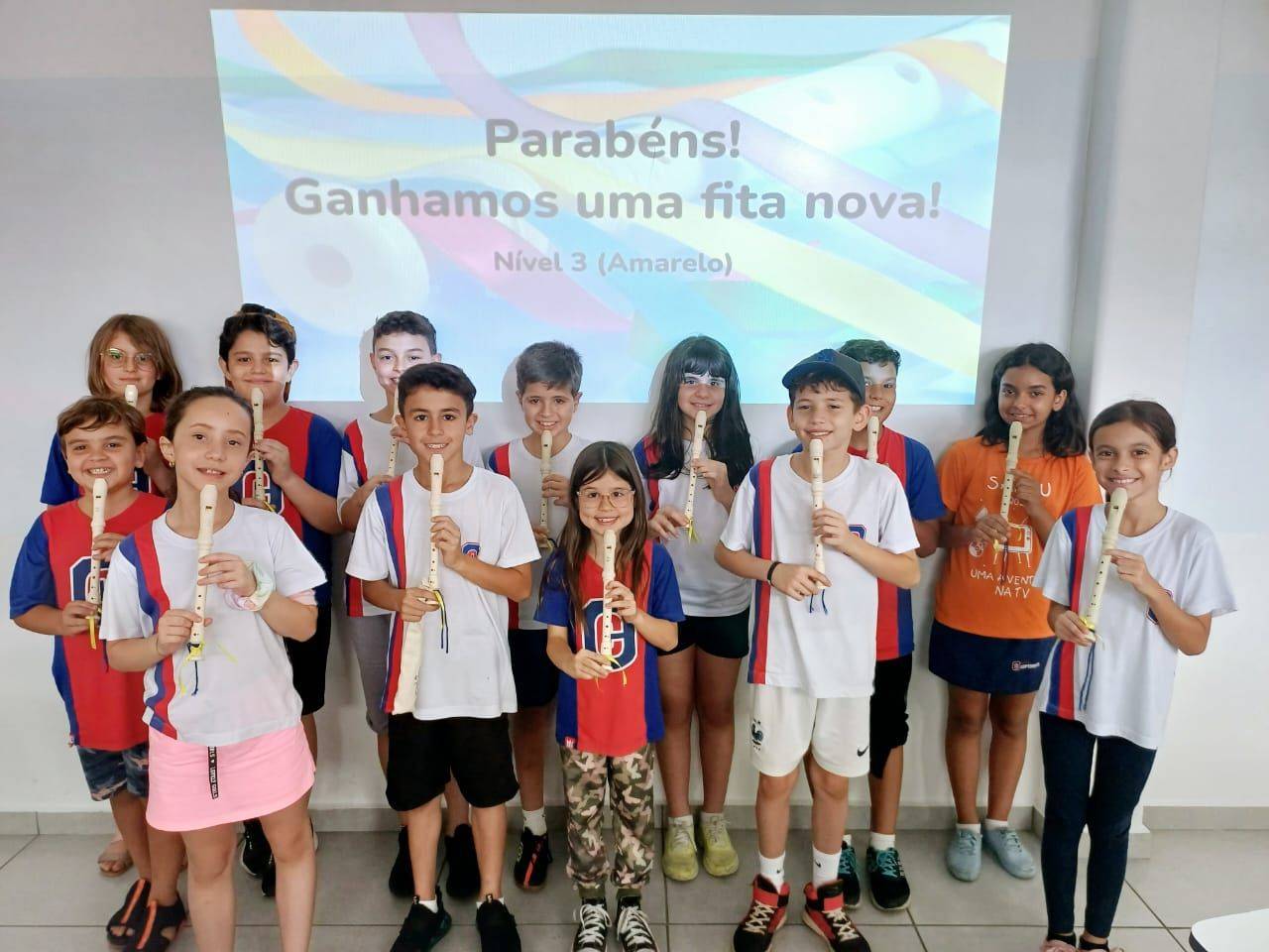 Turminha Superação! O 4°ano B conquistou a graduação para o nível 3 (amarelo) na flauta doce. E vamos rumo a novos desafios. ÃƒÂ°Ã‚ŸÂŽÂµðÂٻˆ