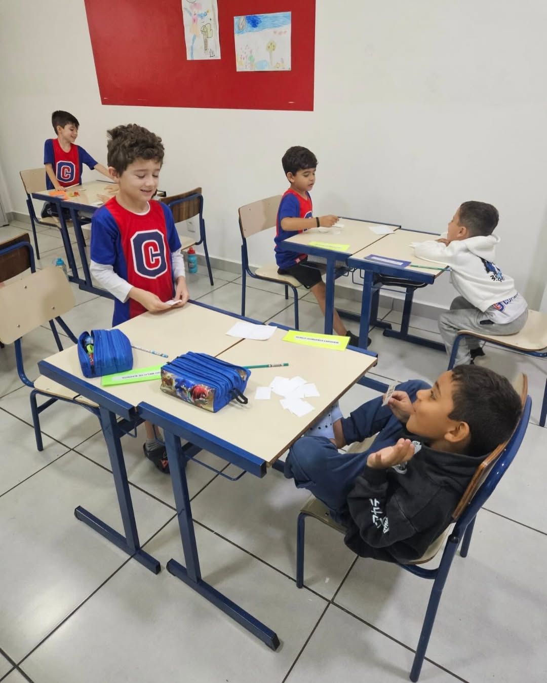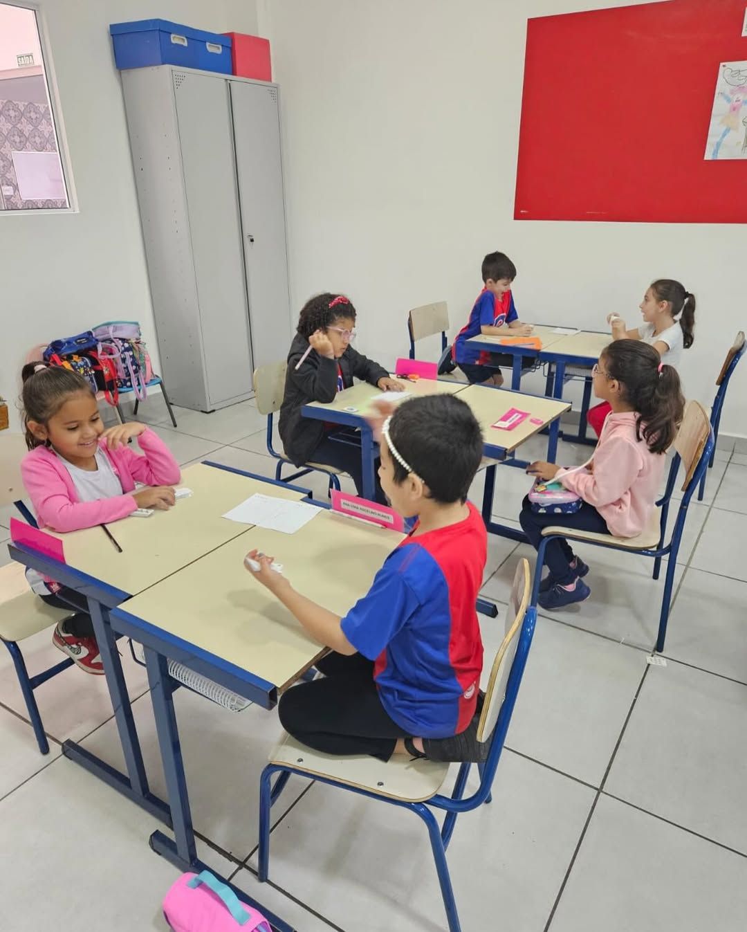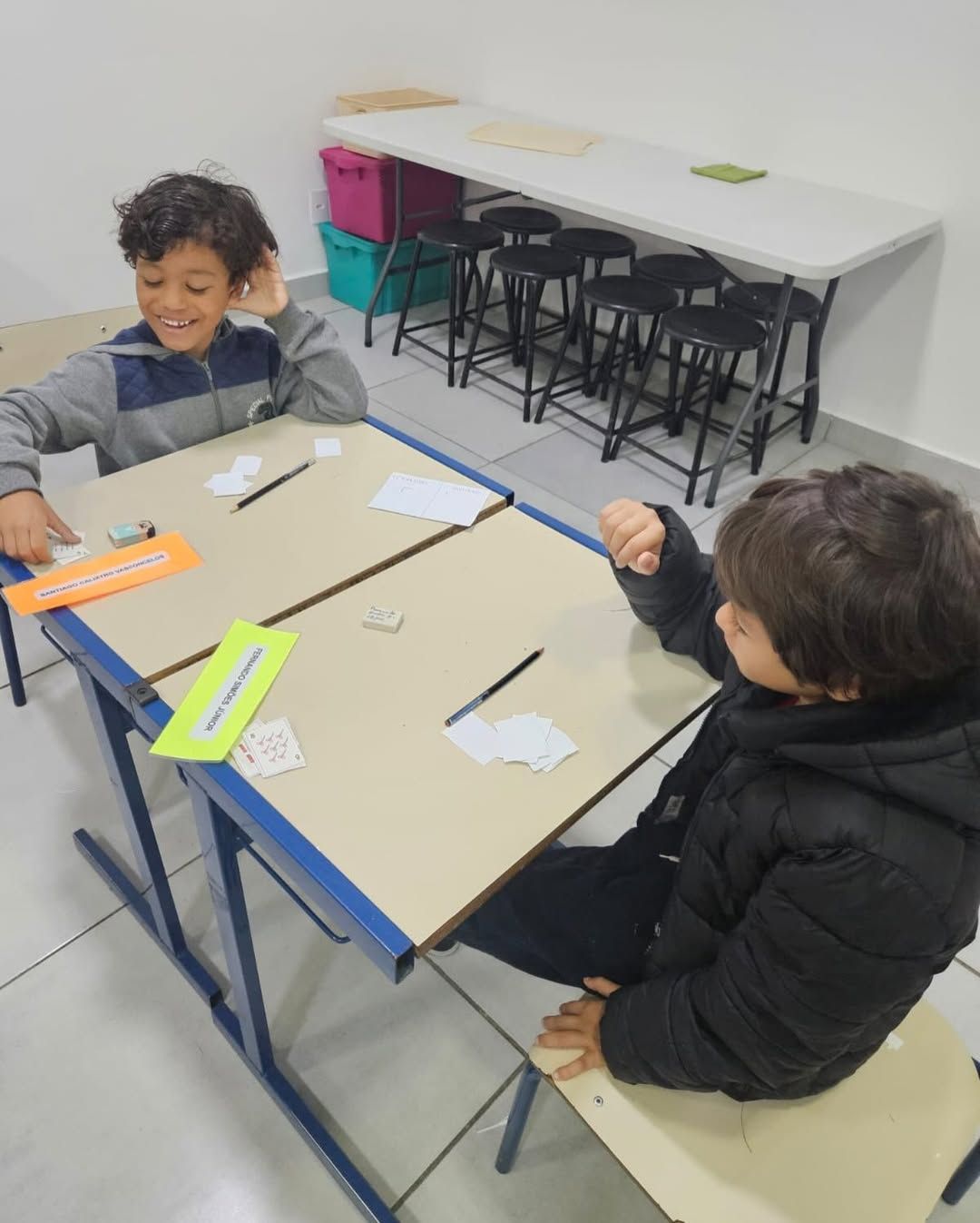No 1º ano A, da professora Helena, a Matemática ganhou um toque especial de diversão e interação. Por meio de um jogo de cartas, os alunos trabalharam habilidades importantes como atenção, comparação de números e contagem de pontos.