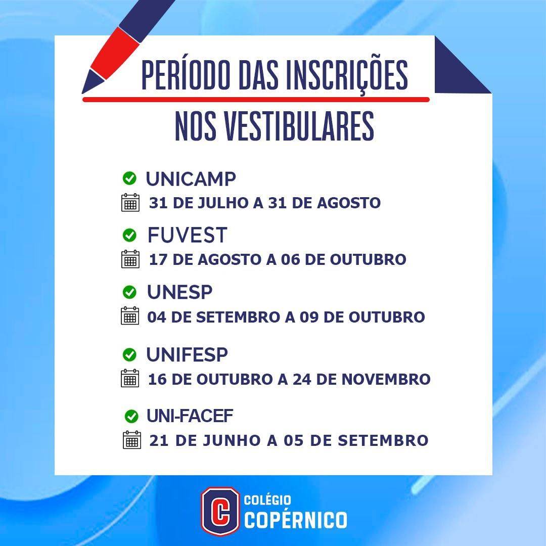 Alunos que participarão dos vestibulares em 2023. Fiquem atentos as datas de inscrições!