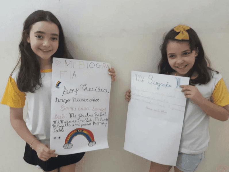 Os alunos do 4º ano do Ensino Fundamental, com o apoio da maestra Angélica produziram cartazes com autobiografias em espanhol.