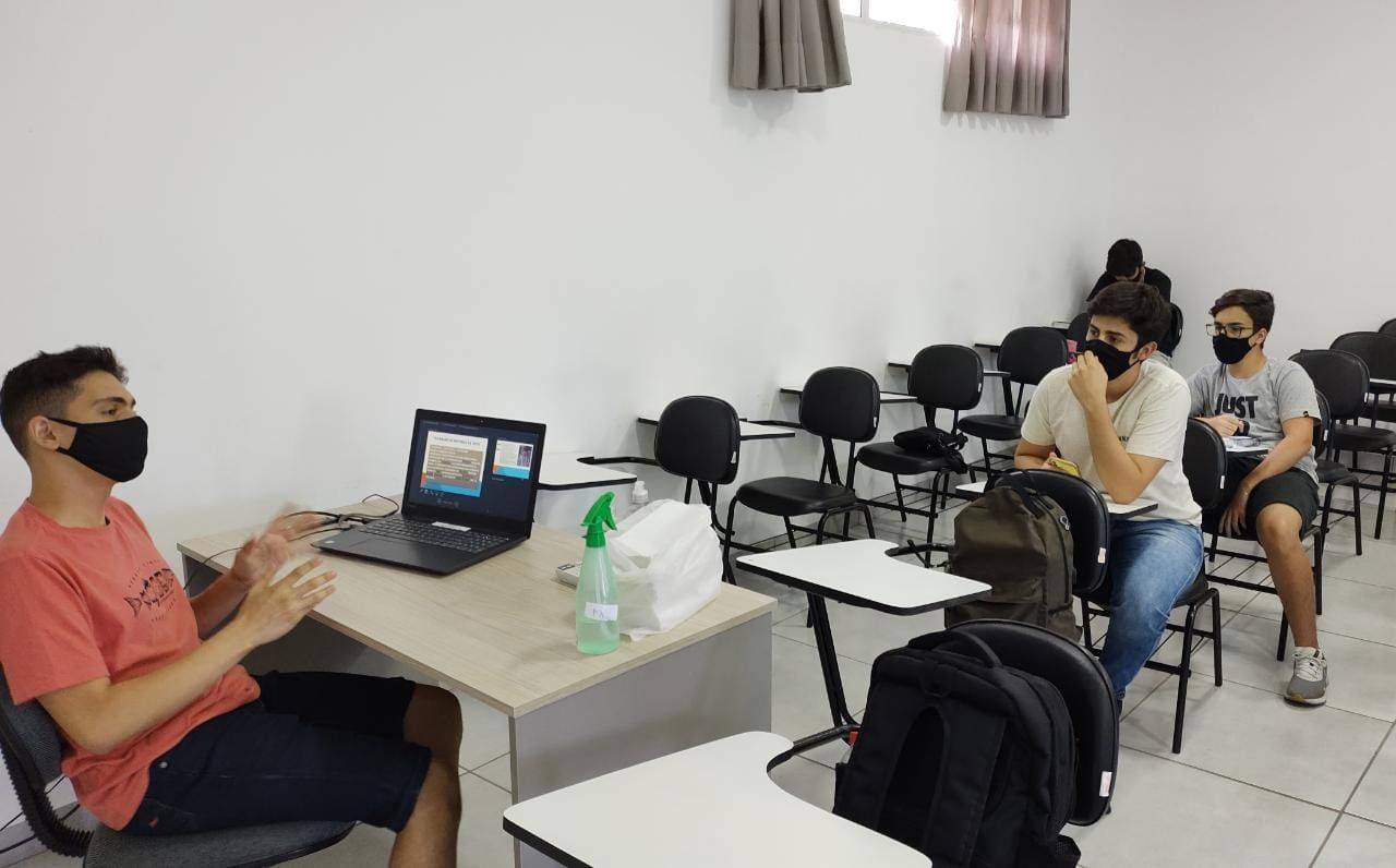 Aula Invertida - Em história da arte o aluno Arthur da 1ª série do Ensino Médio apresenta para o grupo uma aula de arte primitiva indígena, língua, dialeto, cestaria e antropologia.