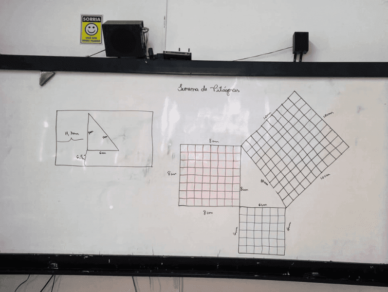 Os alunos do 9º ano realizaram a demonstração geométrica do Teorema de Pitágoras, relacionando as áreas de três quadrados que foram construídos utilizando como medida os lados do triângulo retângulo!