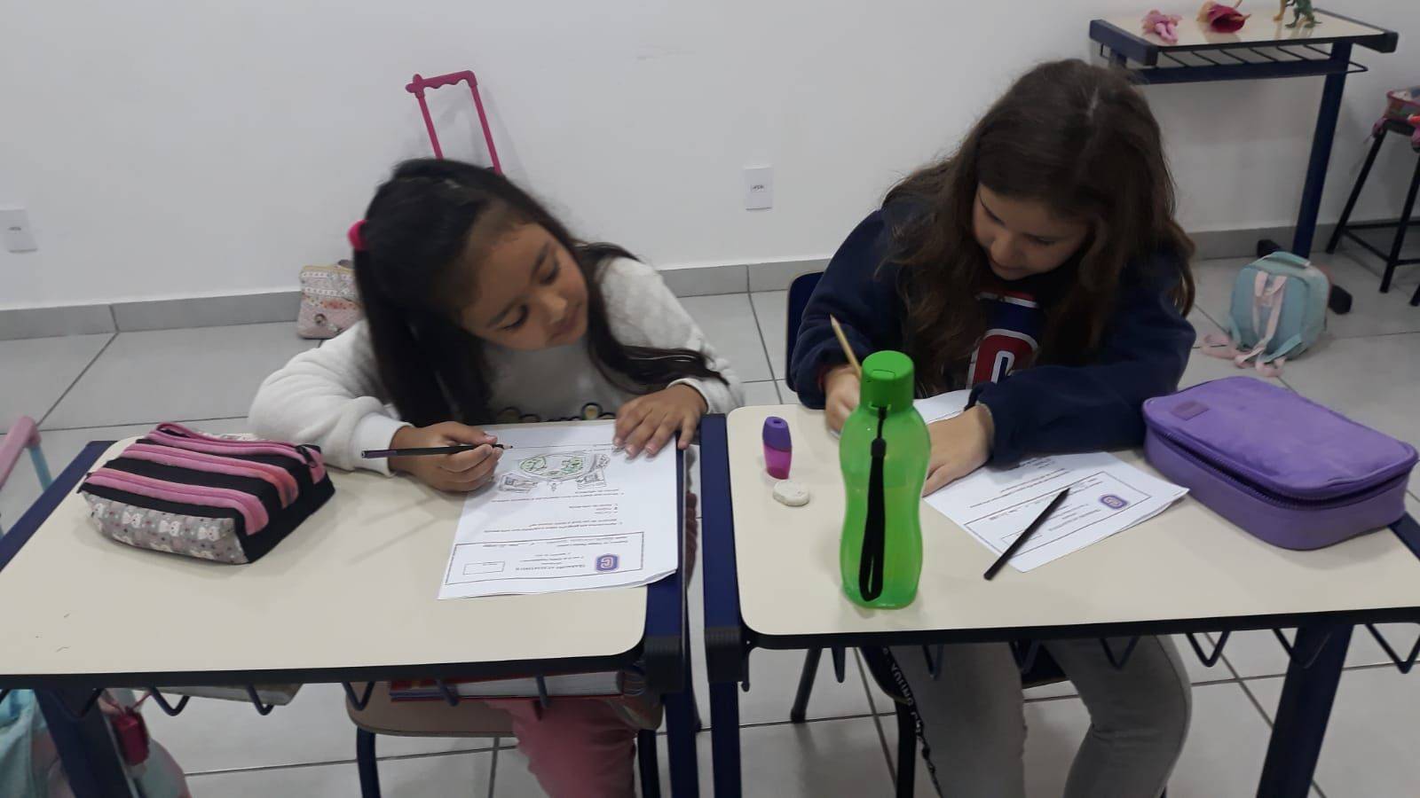 Os alunos do 2º ano, da professora Tatiane, estão estudando sobre trajetos, pontos de referências e localização (direita, esquerda, atrás, frente e entre). Para dar continuidade no aprendizado deste conteúdo, a turma realizou um trabalho em dupla bem produtivo.