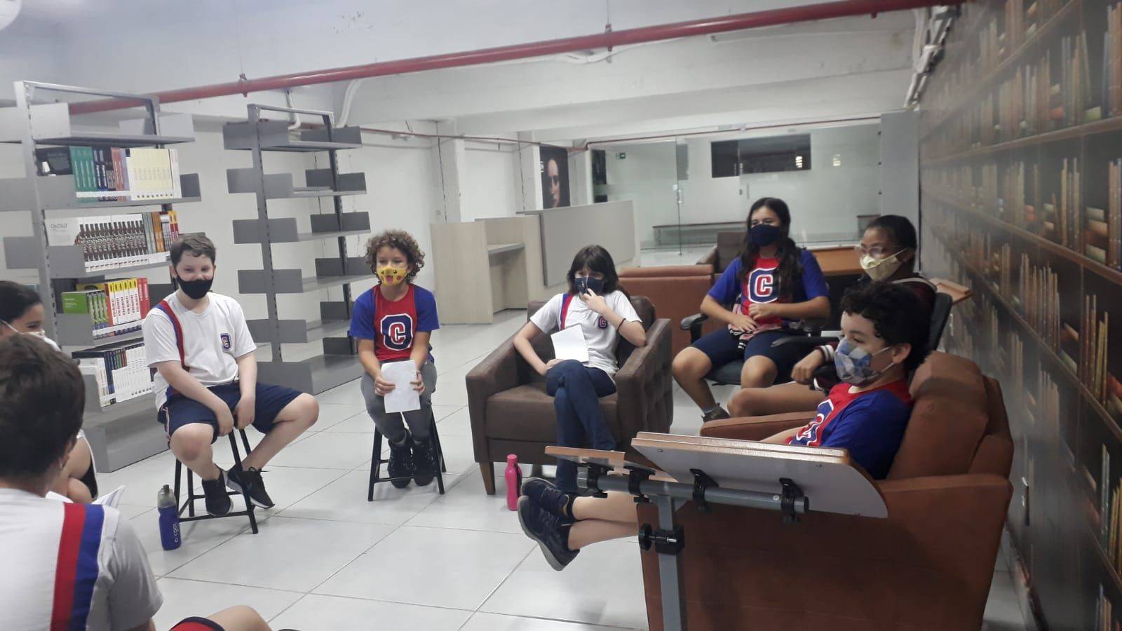 Os alunos do 5o ano A usando a técnica da xilogravura confeccionaram um cordel e compartilharam a leitura com os colegas.